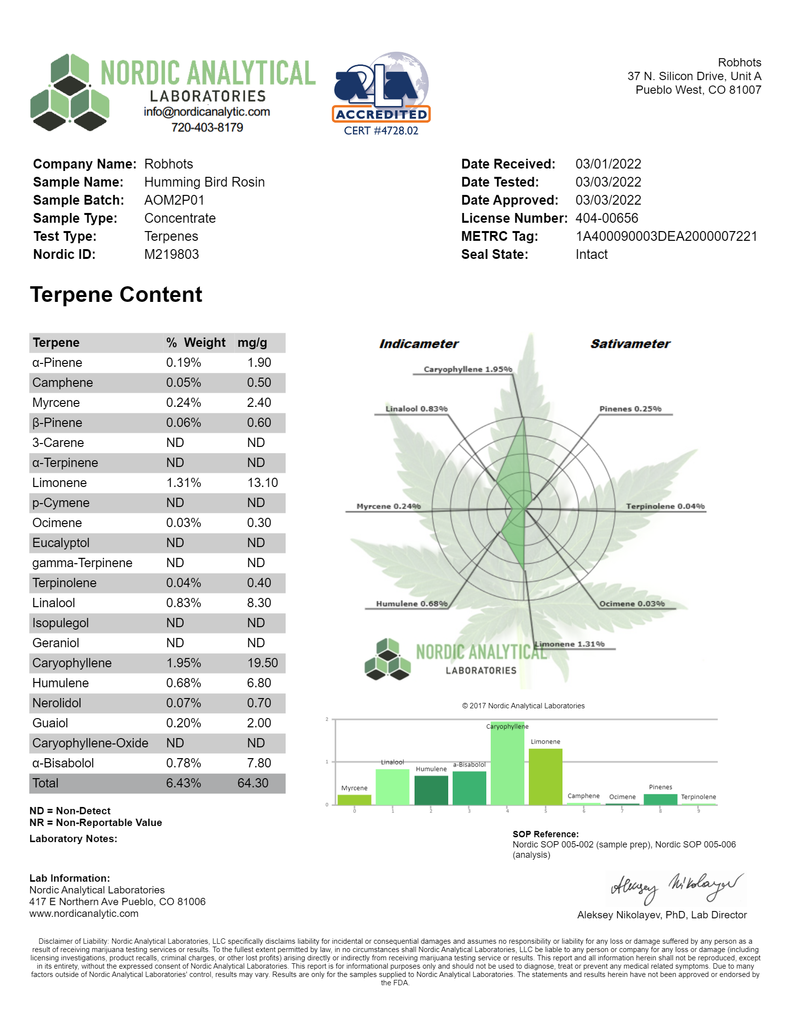 Total Terpenes: 6.43%