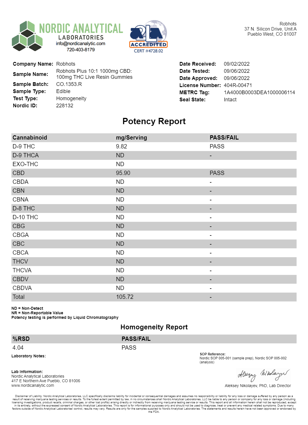 CBD: 959.00mg total, 95.90mg per gummy
