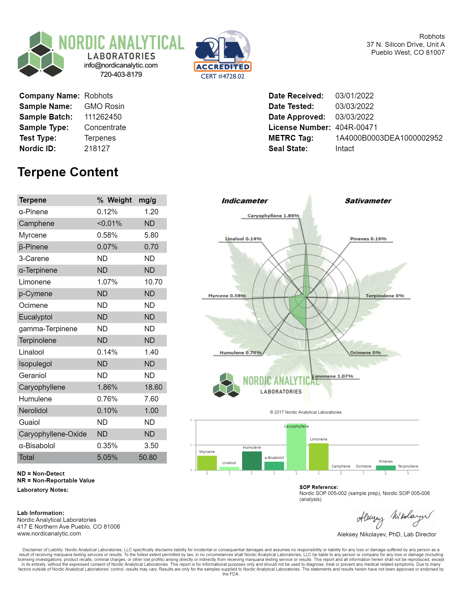 Total Terpenes: 5.05%